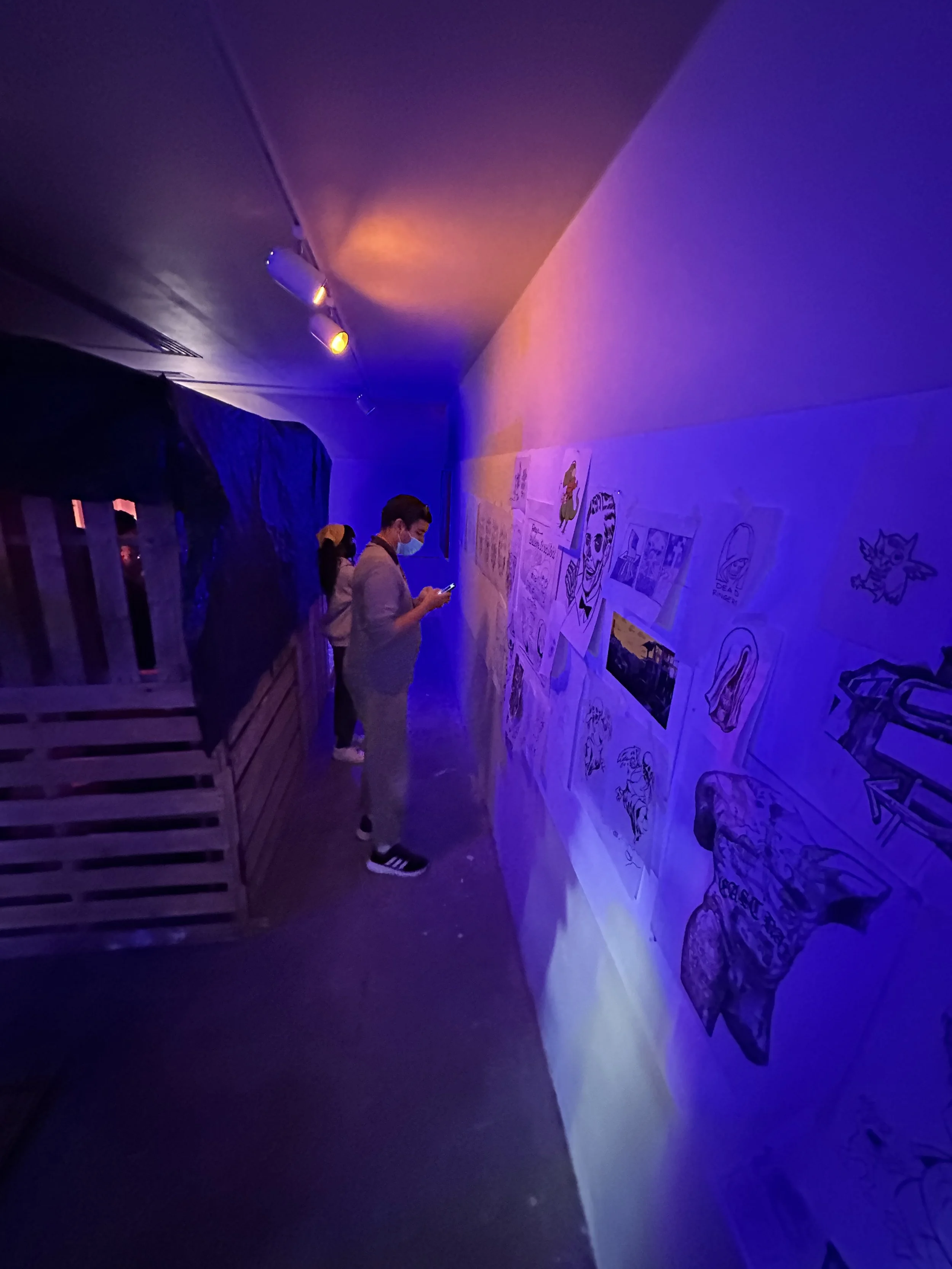 I am an illustrator and painter seeking new ways to interact with the gallery space. I am creating an immersive gallery experience, breaking the boundary between the edge of the canvas, the wall of the gallery, and the outside world.